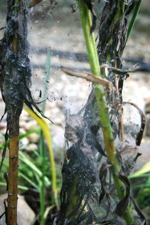 I no longer saw his big black butt hanging out of the hole of his web. And the threaded highways he'd built that took over the remnants of my lilies was starting to fall down. I didn't give it much thought.
